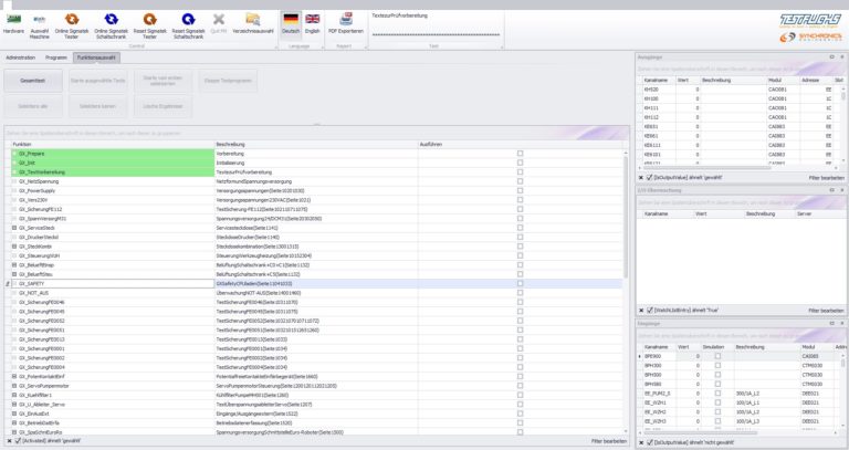 Die Schaltschränke der Spritzgießmaschinen der Firma Krauss-Maffei werden vorwiegend in der Slowakei gebaut, auch jene, die danach in München in die Maschinen eingebaut werden. Der Schaltschranktester dient einer huntertprozentigen Kontrolle der Verdrahtung, ohne dass der Schaltschrank an die Maschine angeschlossen werden muss. Getestet werden digitale und analoge Ein- und Ausgänge im Kleinsignalbereich, aber auch die Netzspannung. Der Tester kann unterschiedlichste Maschinenkonfigurationen aufgrund einer vordefinierten Testprozedur aus dem ERP -System testen.